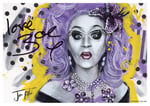 'Love Zoe' mini-print fits a standard A4 frame. Perfect for your home wall gallery and a MUST for Drag and DJ Zoe fans everywhere. Dimensions: 29.7 x 21cm on 350gsm premium silk stock.
