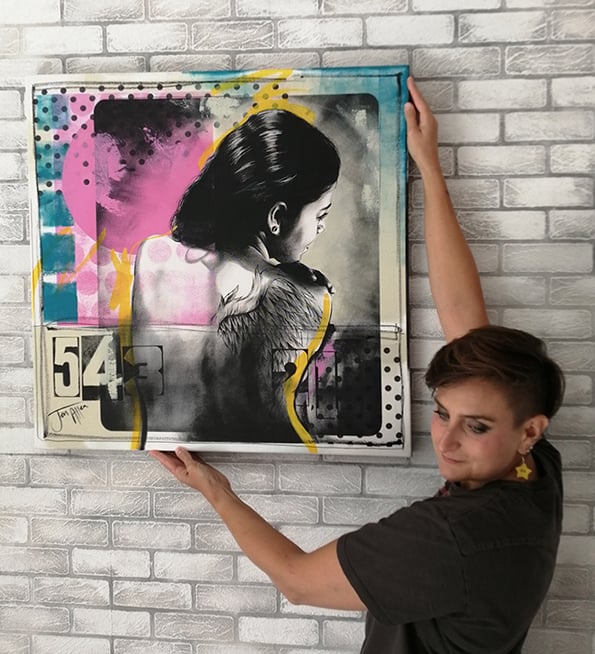 5, 4, 3, 2, 1… let’s go! Almost Angelic is my holy fusion of the classic and the modern—something I love to explore in my work. I’ve always been drawn to contradictions and contrasts, and this piece plays with those themes in a way that feels both bold and beautifully balanced.