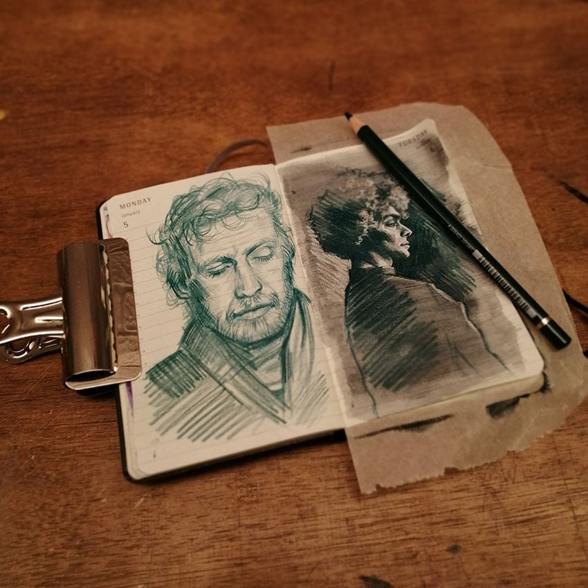These sketches are never repeated, one-offs, and not public (as of January 7th 2026). They are revealed only to those who are part of this intimate circle. Will you join me as I uncover a daily portrait in my secret sketchbook?